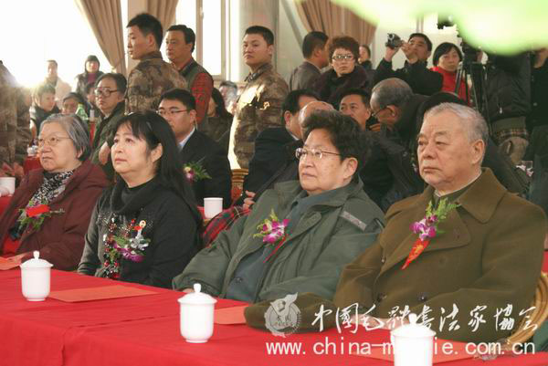(本网讯)2011年12月26日是伟大领袖毛泽东主席诞辰118周年纪念日。12月25日,北京南郊的红星韶膳国际餐饮养生会馆里毛主席女儿李讷、女婿王景清、儿媳刘思齐、侄女毛小青;毛主席身边工作人员钱嗣杰、吴连登、田云毓等;老红军、老八路和老一辈革命家子女后代;中国毛体书法家协会顾问、著名书法大师贾松阳及夫人李霞,顾问王路敏、侯安春,中国毛体书法家协会荣誉会长常东风,副会长杨国林,副会长兼秘书长孔维阳;还有许多南郊农场的干部、群众以及红色书画家、收藏家等近千人,相聚在此纪念毛主席生日。
