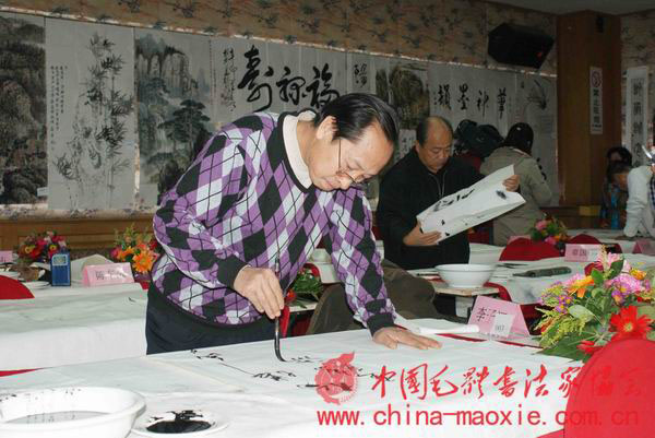 中国毛体书法家协会副会长兼秘书长孔维阳书写现场