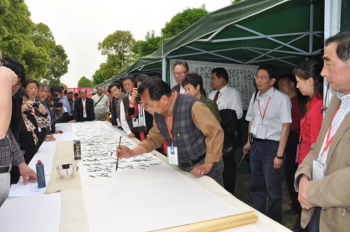 2010年5月13日,中国毛体书法家协会组团走进上海世博会取得了可喜的成绩,开展仪式的成功,入会领导与评论家对毛体书法走进世博会的肯定、赞扬、祝贺,极大的鼓舞了毛体书法家和毛体书法爱好者,大家群情激奋,壮志未酬,展开长卷,泼墨挥毫,集体書写了毛泽东诗词(水调歌头—游泳)。