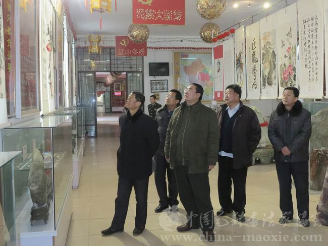 2012年12月26日下午,中国毛体书法家协会副会长兼秘书长孔维阳、副会长梁宝玉、常务理事谷建林、会员赵恩海、办公室主任李莹,山东省济宁军分区副政委王波,毛体书法家崔金言一行参观了山东省邹城市毛泽东主席像章陈列馆。