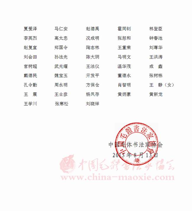 “庆祝中华人民共和国成立64周年暨毛泽东同志诞辰120周年毛体书法澳门展”入展及特邀展名单