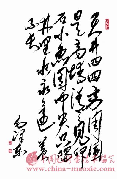 (本网讯)廊坊日报编者按:在毛泽东同志诞辰120周年之际,廊坊市人大常委会原副主任、现任中国毛体书法家协会副会长杨国林,用“毛体”精心创作出已发表的毛泽东诗词,但一直未见有伟人手书的50幅书法作品,意在弥补毛泽东诗词中部分有诗无字的书法缺撼,在一定程度上似乎再现了当年毛泽东的艺术精彩和思想情怀,为人们欣赏“毛体”艺术增加了新看点,在探索伟人逝去后“毛体”传承的艺术上迈出了关键的一步。对此,中央档案馆研究员、“毛体”手书鉴定专家齐得平先生给予高度评价,认为这些作品在传承艺术方向上具有引领意义,有欣赏价值,值得关注。杨国林热衷于“毛体”书法临摹和钻研,经过长期的意志、毅力和技艺的磨练,目前在中国“毛体”书法界内很有影响。他的书法作品曾在韩国、澳门、上海世博会、廊坊等地展出,曾多次荣获红色艺术荣誉称号。不少作品曾被国家部级领导、军队将军、国际友人、革命圣地纪念馆和不少“毛体”书法爱好者收藏。不仅为廊坊书法艺术的对外交流赢得了一席之地,也为廊坊赢得了红色书法艺术的荣誉和骄傲。本报从中选摘部分作品,以飨读者。