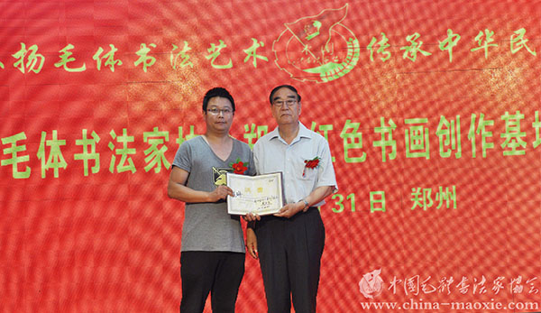 郑州既有古代历史文化,现代红色文化,时下一大批‘毛体’书写队伍,还有一些企业家的参与支持。环境得天独厚,天时地利人和。在这里组建基地条件具备、时机成熟。中国毛体书法家协会批准在郑州建立基地的申请是正确的。