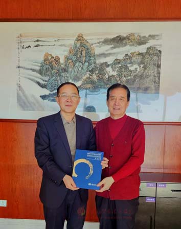 杨国林名誉会长向赵学勇顾问赠送书籍