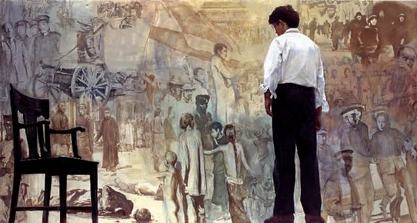 陈逸飞《踱步》布面油画 186×356 cm 1979年估价待询